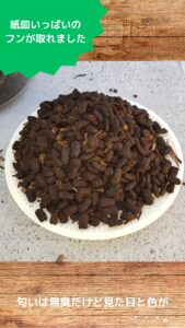 当時、虫かごにカブトムシ雄雌をそれぞれ1匹ずつ飼っておったが、其奴(そやつ)らが知らぬ間に卵を産んでおったらしく、虫かごに得体の知れない無数のBIGコーヒー豆を発見したのを今でも鮮明に覚えておるわ。気持ち悪いかもしれんが、ワシの二の舞を演じないようリアルなフン実状をお届けするのじゃ。